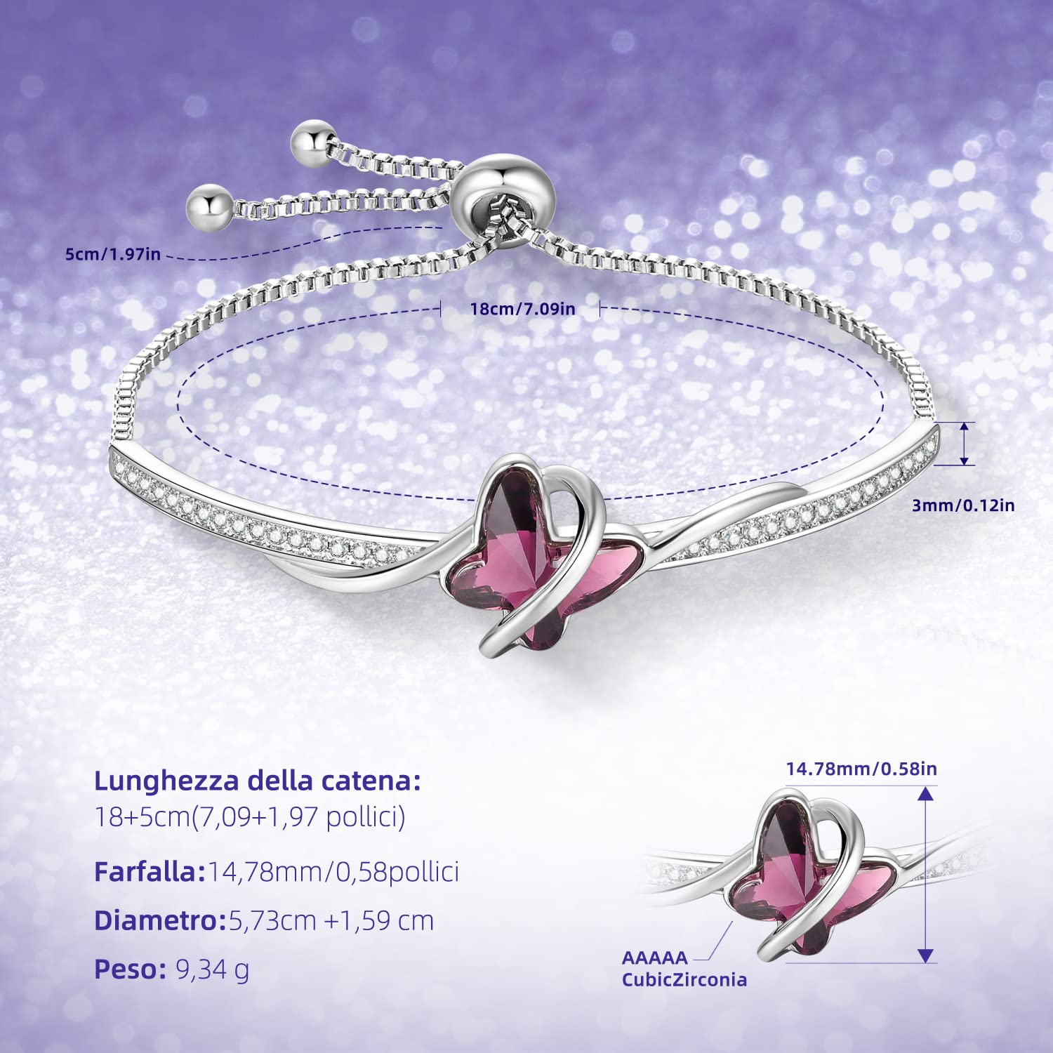 Bracciale Donna Farfalla – Cristallo Viola – Zirconi 5A