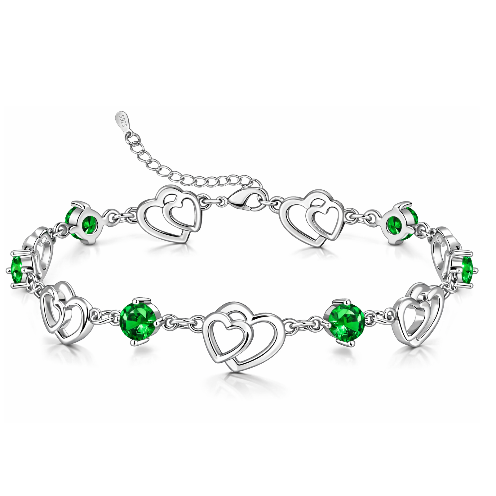 Bracciale Donna in Argento 925 Cuori e Zirconi Verdi