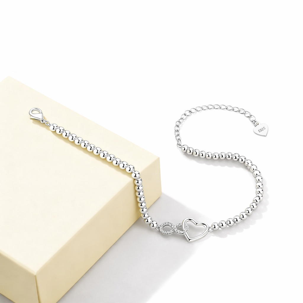 Bracciale Infinito Donna con Cuore in Argento 925