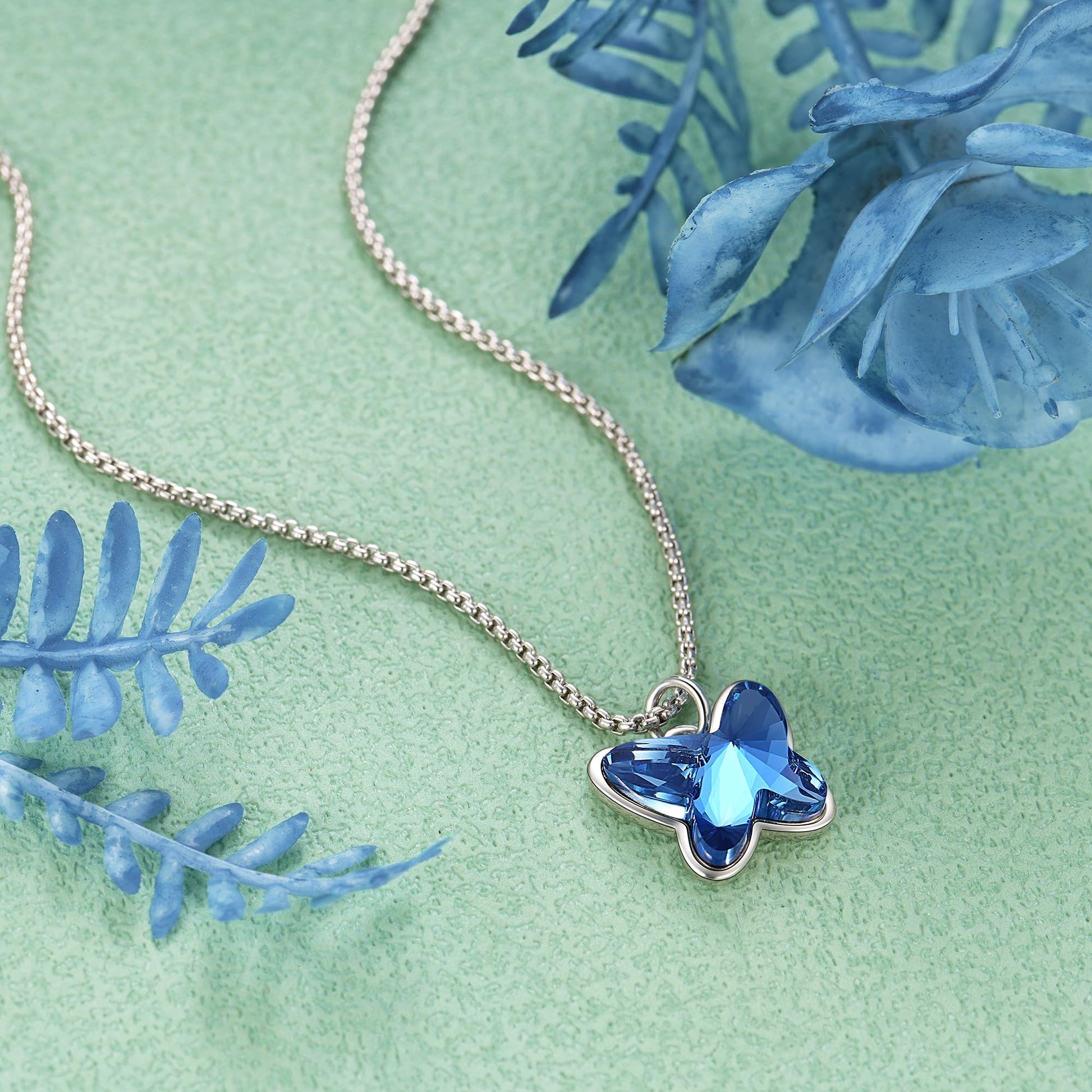 Ciondolo a farfalla con pietra blu